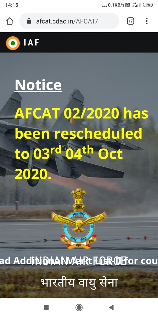 AFCAT II 2020 examination has been rescheduled. Kindly check on website